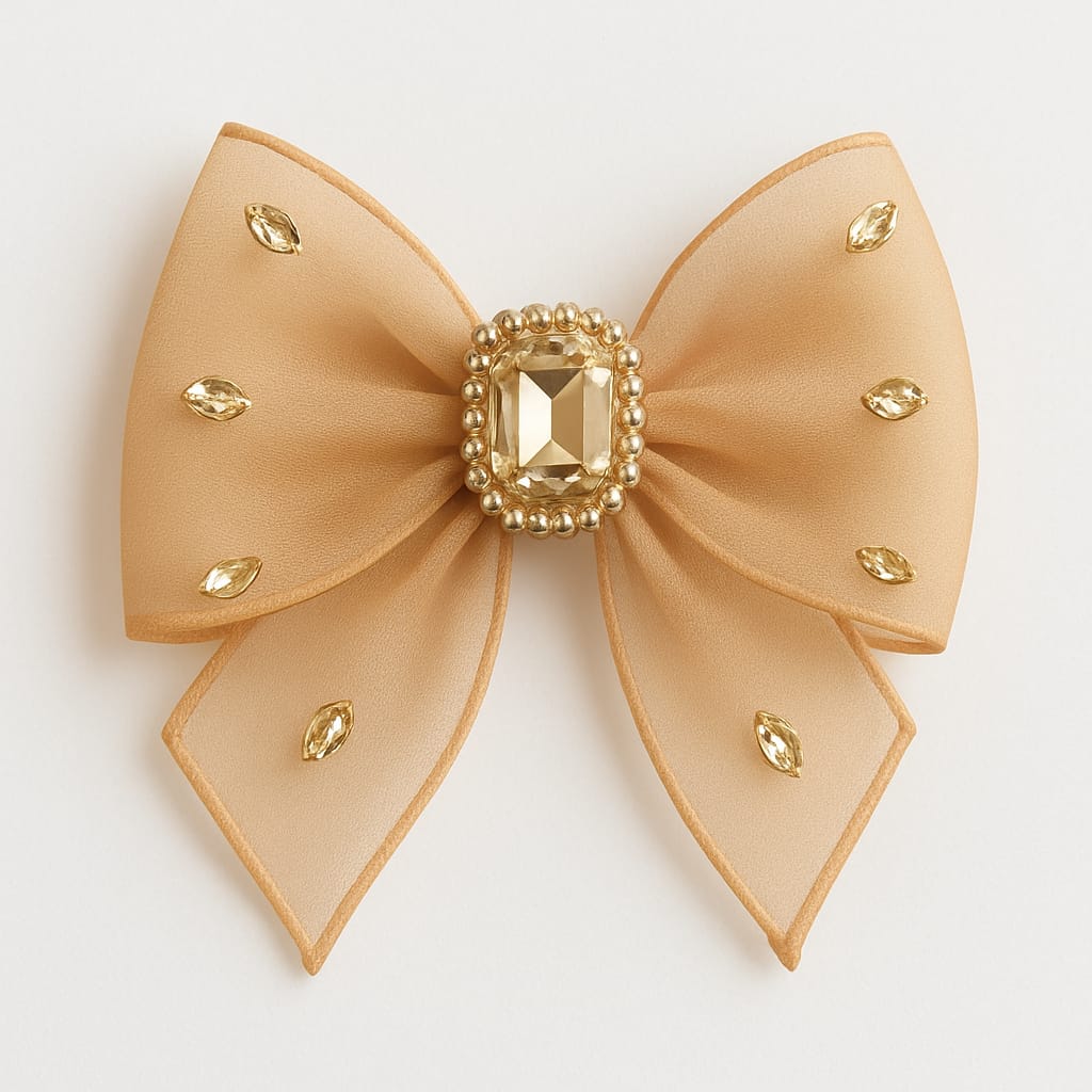 A delicately crafted Korean-style bow, adorned with elegant embellishments for a chic and graceful touch. Perfect to elevate everyday hairstyles or complement festive and formal looks.